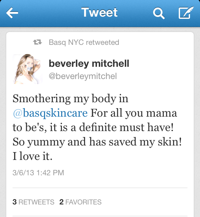 basq, the leader in maternity and new mom skincare recently gifted their exquisite line to Actress Beverley Mitchell and her guests at her Los Angeles baby shower.