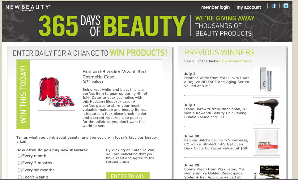 On July 4, 2013, New Beauty Magazine Online featured Hudson+Bleecker’s Vivant Poppy (red) Cosmetics Case within the outlet’s “365 Days of Beauty Giveaway.”