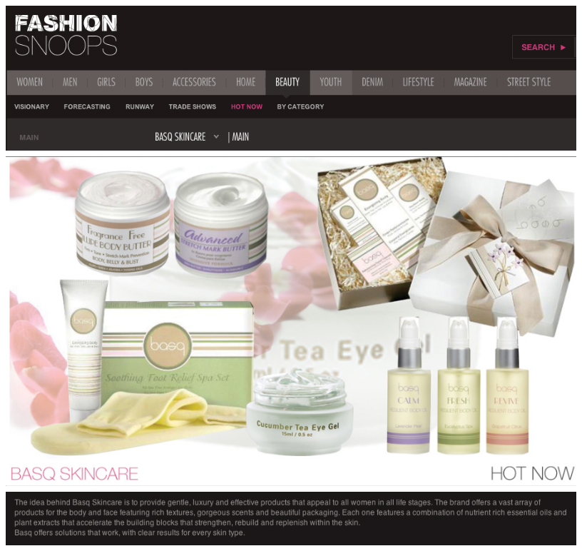 Fashion Snoops, a global online trend-tracking and lifestyle sites features basq within their “Whats Now: Beauty” coverage.