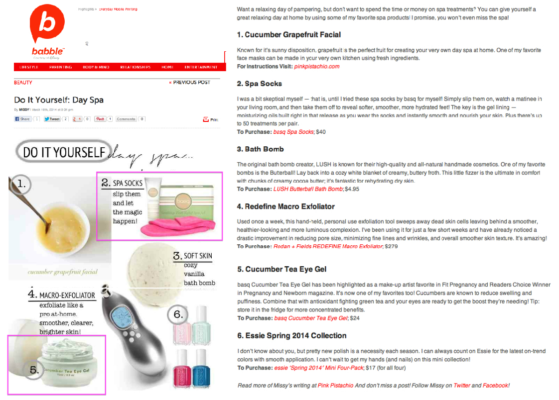 Babble.com, the destination for parenting, beauty, home, food, travel and entertainment features basq’s Cucumber Tea Eye Gel and Soothing Foot Spa Kit within their “Do It Yourself Day Spa” beauty coverage.