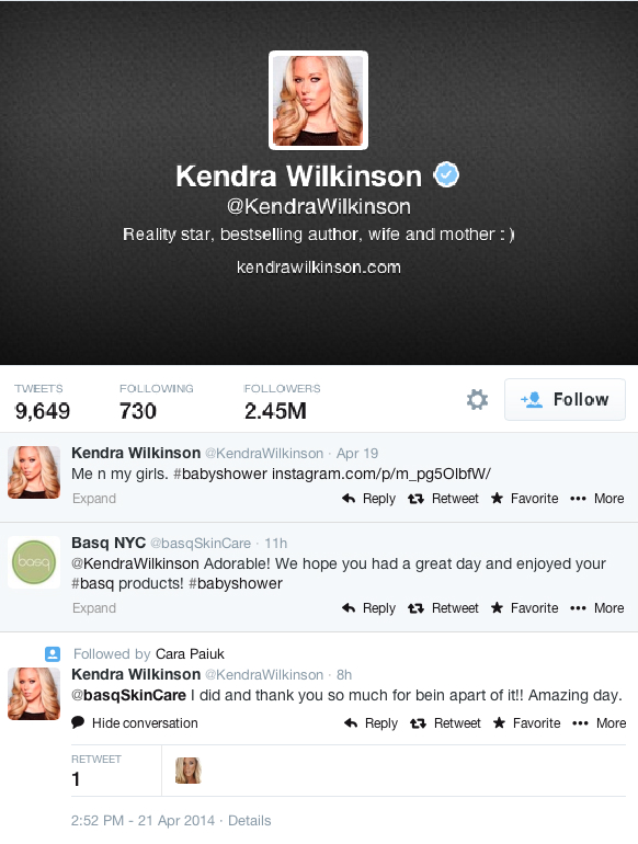 basq recently gifted TV personality, Kendra Wilkinson a vast array of basq products for her April “Sprinkle” baby shower.