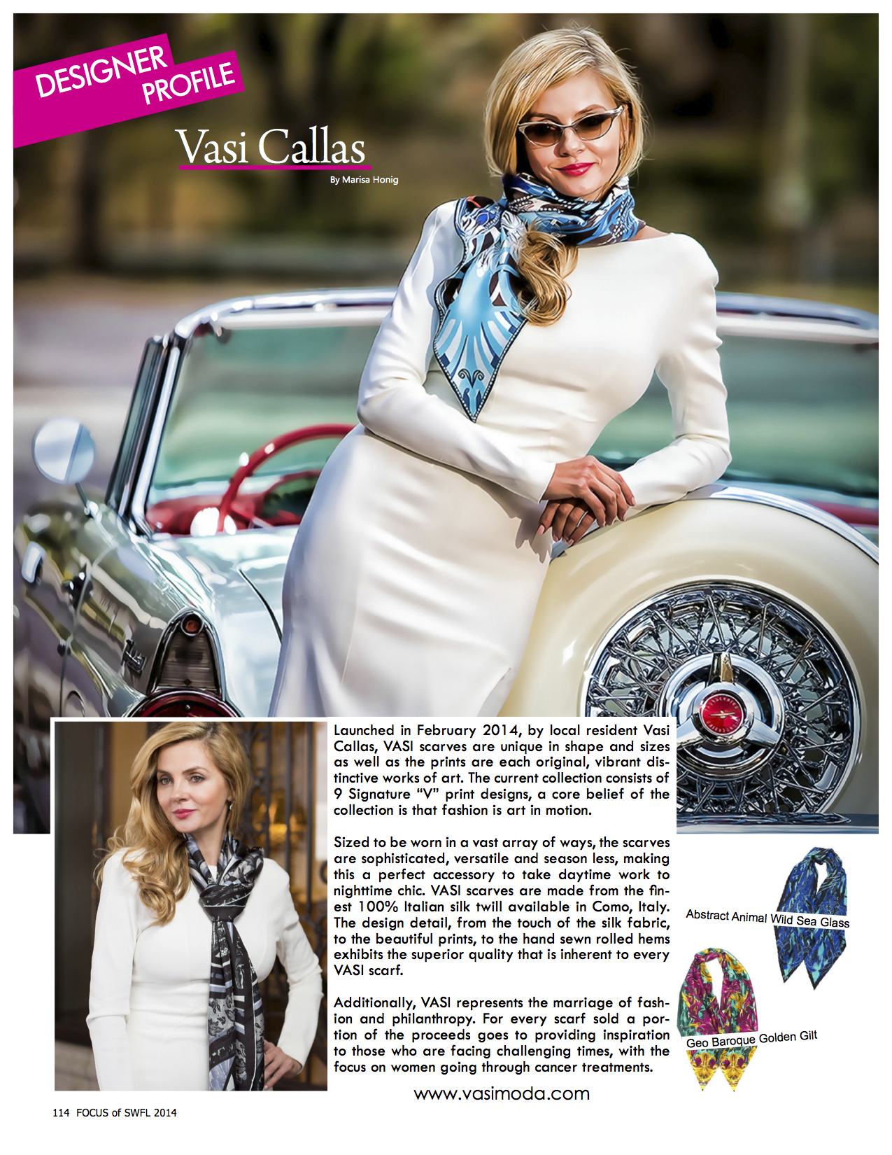 Focus SWFL Magazine features Founder and Designer, Vasi Callas of VASI Moda Accessories, in “Designer Profile” feature in the May/June issue.