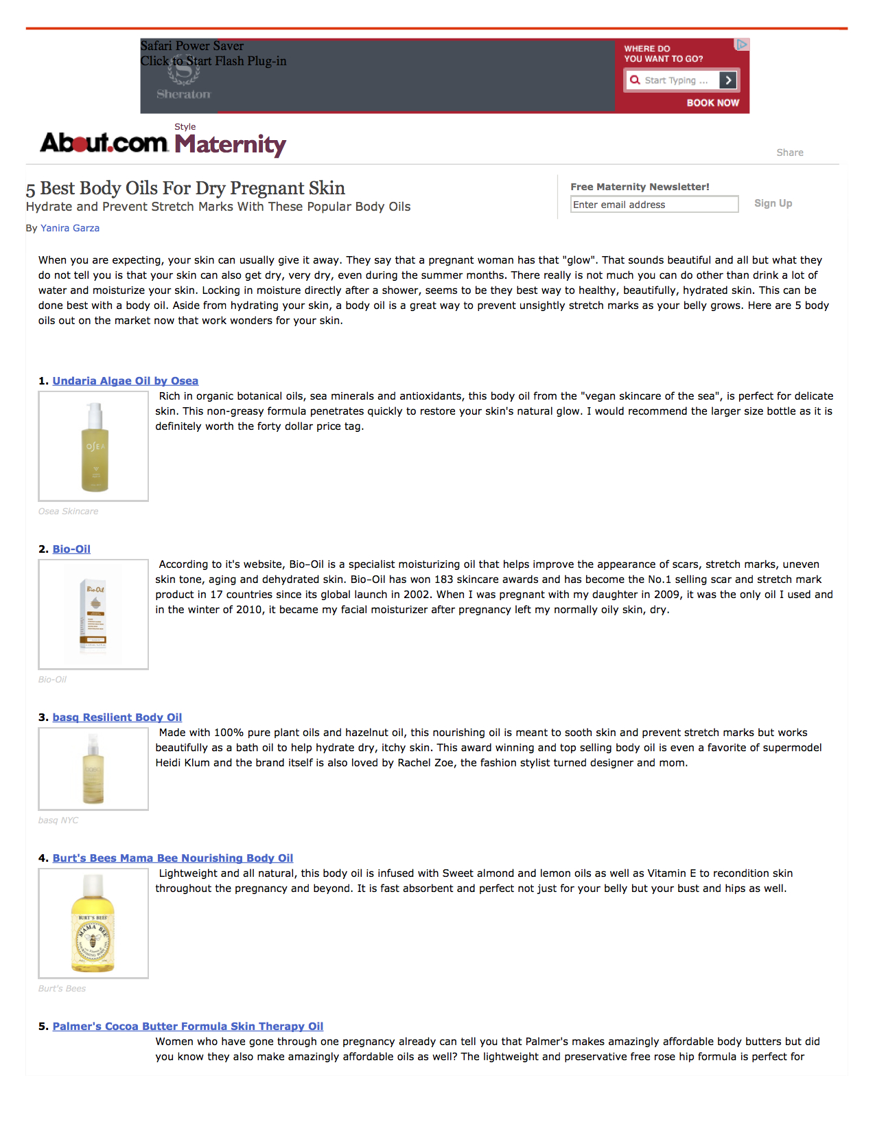 About.com features basq’s Resilient Body Oil within the “5 Best Body Oils for Dry Pregnant Skin” coverage within the Style/Maternity section. About.com is a valuable resource for content that helps people to solve the large and small needs of everyday life.