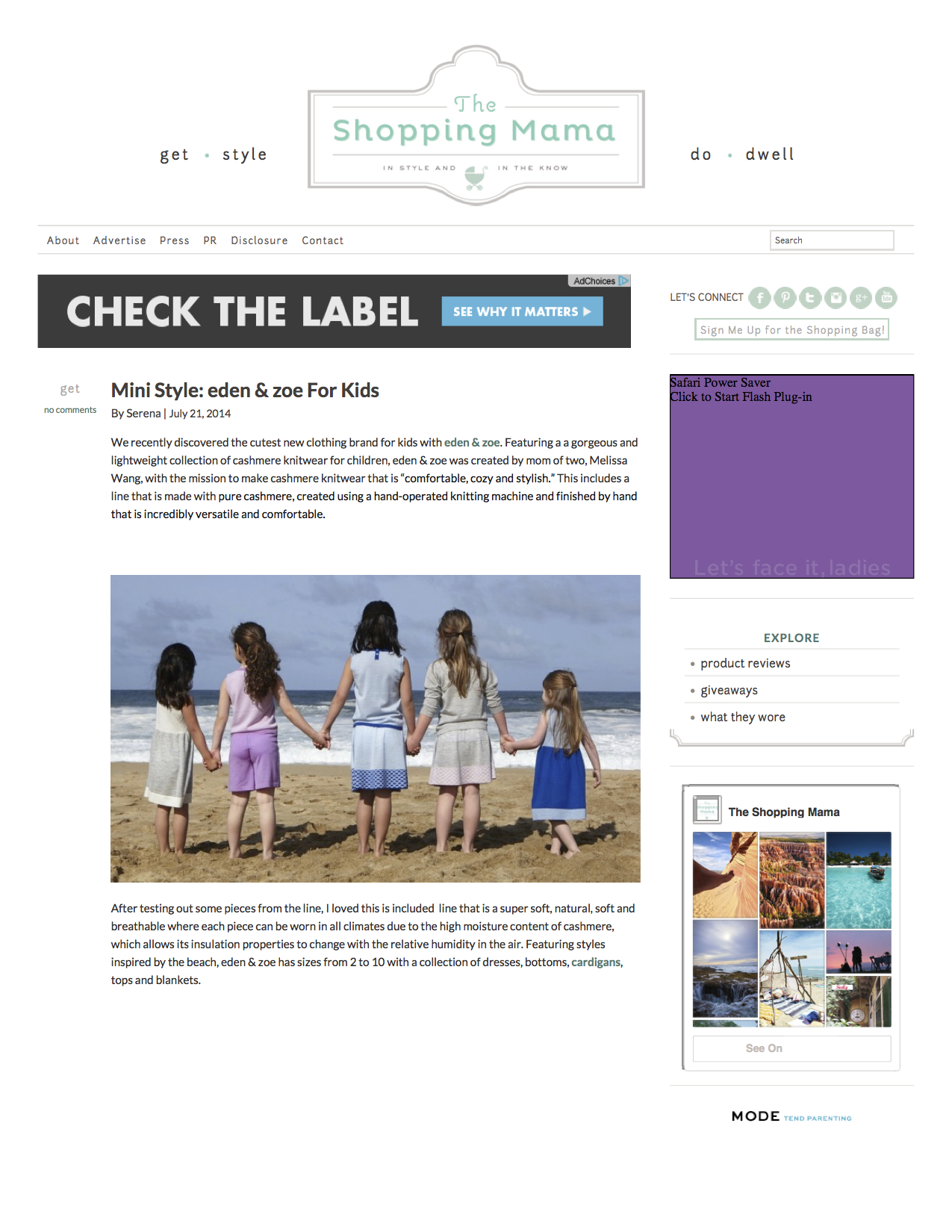 The Shopping Mama, the online destination for moms who are in style and in the know, feature eden & zoe in a July 2014 post.