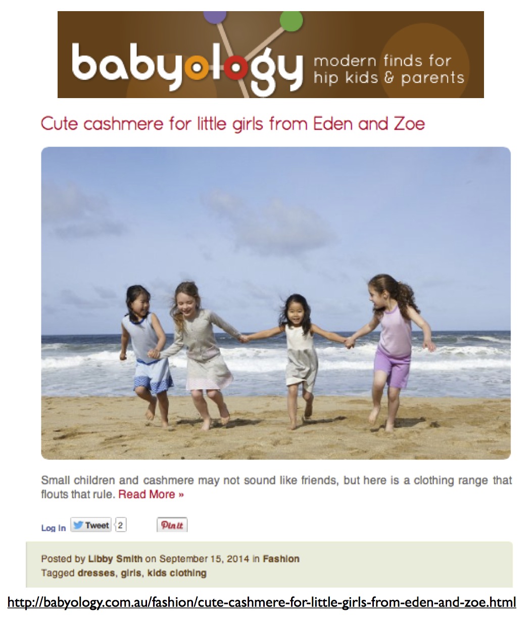 Babyology.com.au features eden & zoe’s SS2014 collection within the outlet’s fashion coverage. Based in Australia, Babyology hunts down cool, innovative gear for pregnancy, babies, toddlers and kids.