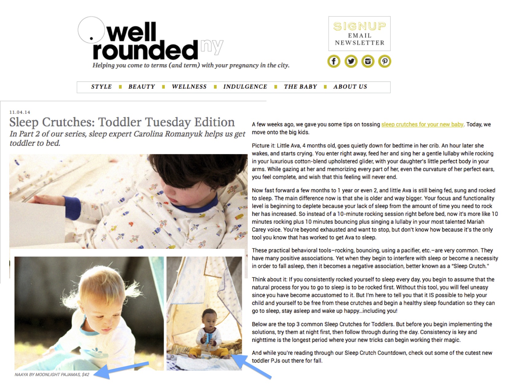 Lifestyle site, Well Rounded NY, features Naaya by Moonlight’s pajamas in their “Sleep