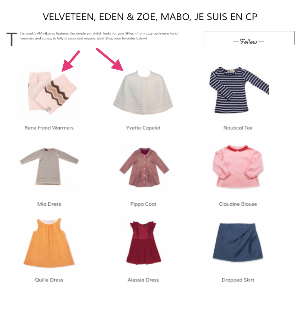 Stylish Blog, Mini Maven, features eden & zoe’s cashmere Rene Hand Warmers and Yvette Capelet in their “Mini Loves” coverage.