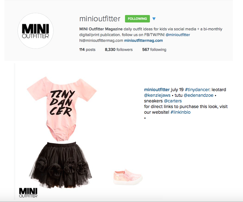 Mini Outfitter Magazine includes eden & zoe’s Alessandra tutu skirt within their Instagram ‘Tiny Dancer’ ensemble.